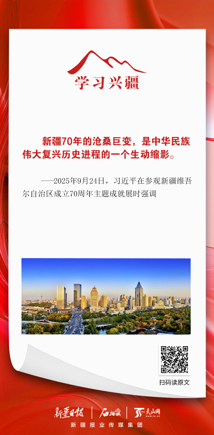 新疆70年的沧桑巨变,是中华民族伟大复兴历史进程的一个生动缩影。