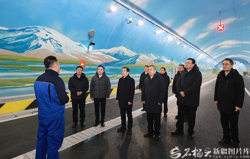 12月26日,自治区党委书记陈小江、自治区主席艾尔肯·吐尼亚孜在G0711乌尉高速天山胜利隧道,调研工程建设运营工作,代表自治区党委和政府向公路建成通车表示热烈祝贺。天山网-新疆日报新疆日报记者 崔志坚摄