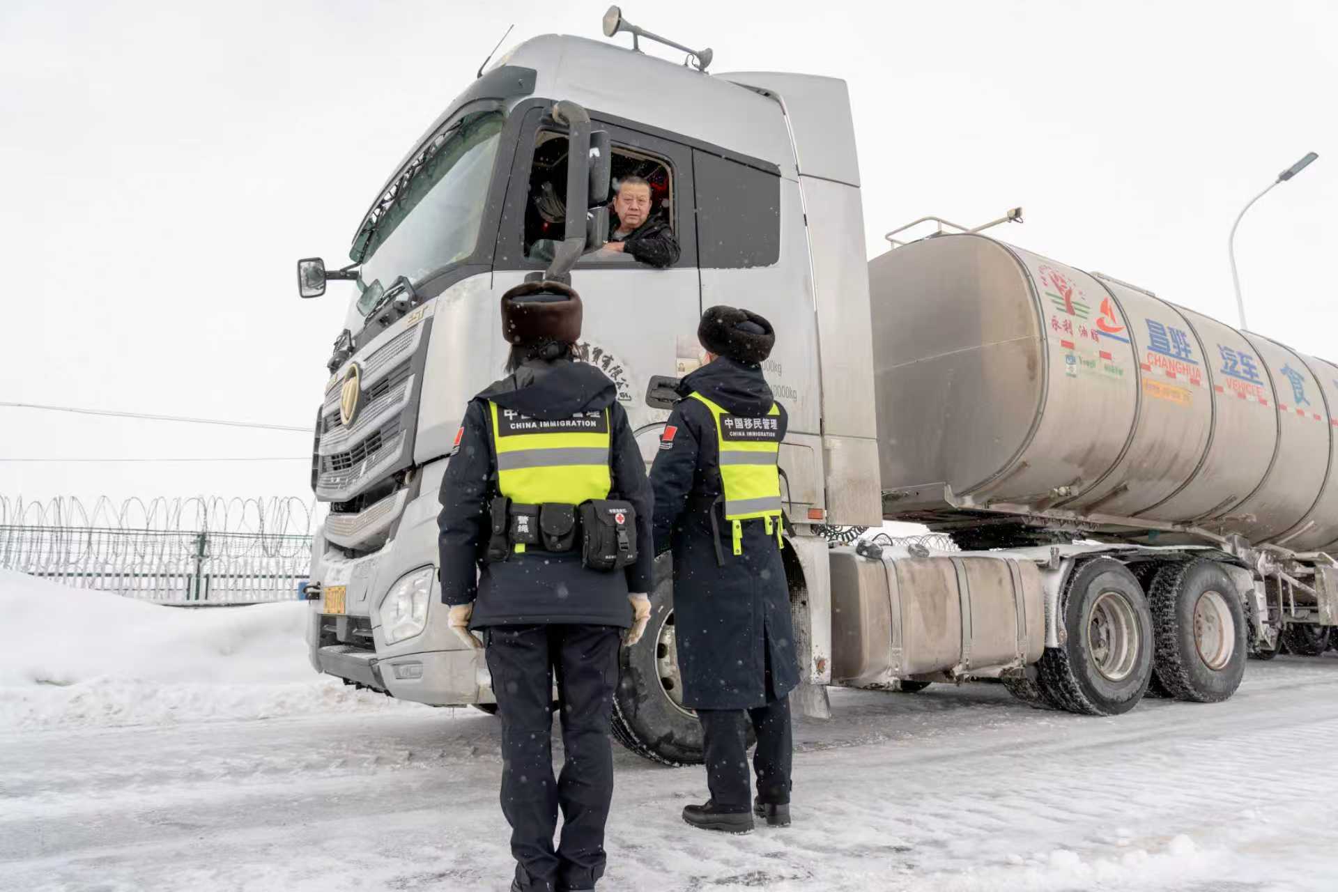 “我们全力确保风雪天气下国门通关不中断、贸易通道不停顿。”吉木乃出入境边防检查站执勤一队副队长陈瑞玘说。