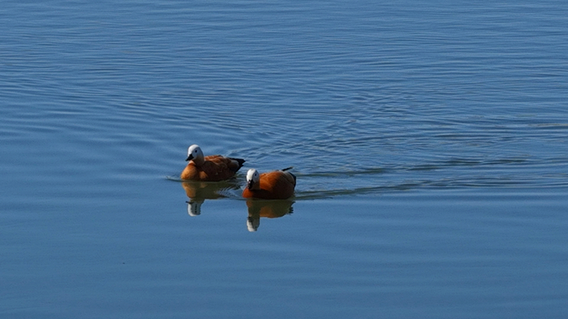 此次现身的赤麻鸭,是阿勒泰地区的常见鸟种,也是候鸟迁徙中最晚离开的鸟类之一。其全身栗黄色的羽色辨识度极高,颈部狭窄的黑色颈环与翼上醒目的白色斑形成鲜明对比,铜绿色的翼镜在阳光下熠熠生辉。它们偏好平原湖泊、河流及沼泽等淡水水域,常以数十只至数百只的群体活动,在浅滩和陆地间觅食,是湿地生态系统健康与否的重要“指示物种”。