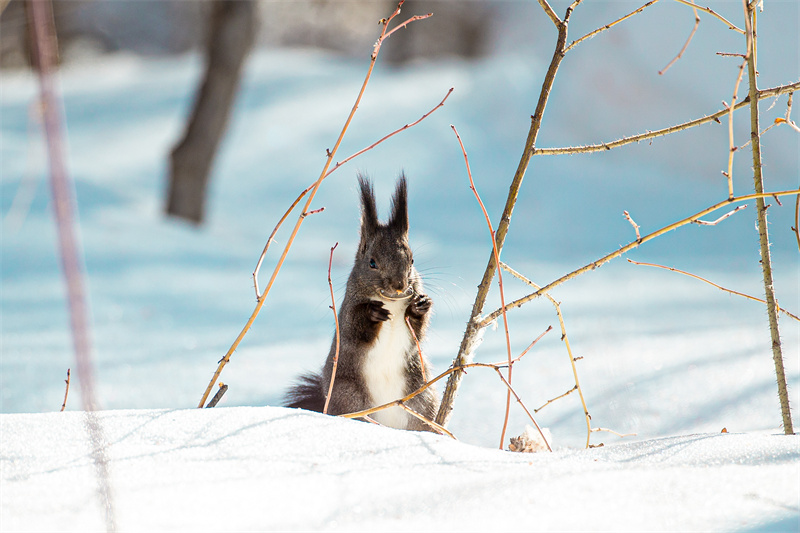 小松鼠在林间自在撒欢。