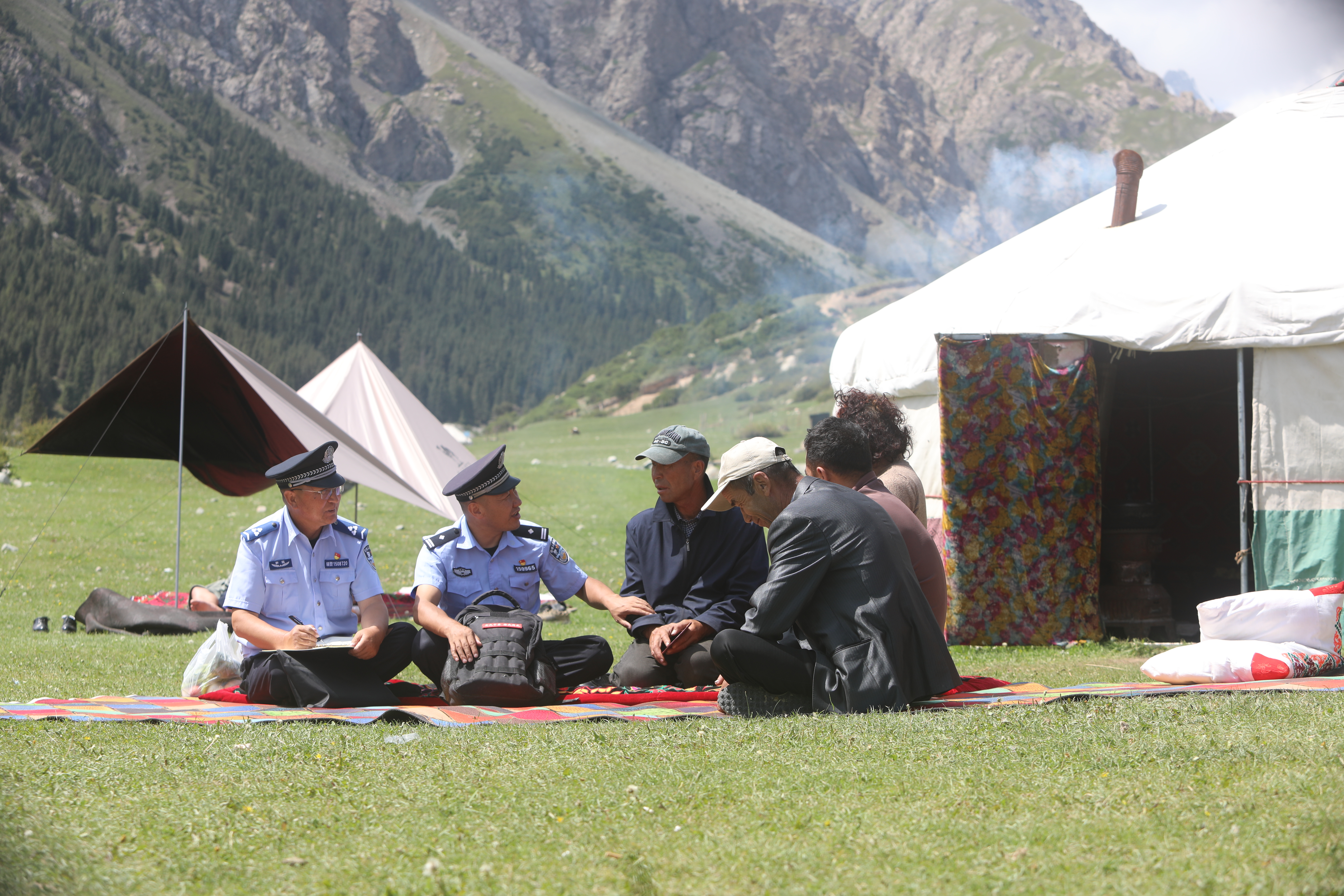8月14日,乌恰县公安局波斯坦铁列克乡派出所“马背警务”服务队民警前往牧区,向牧民讲解预防电信网络诈骗、道路交通安全等知识。通讯员 沙辉摄