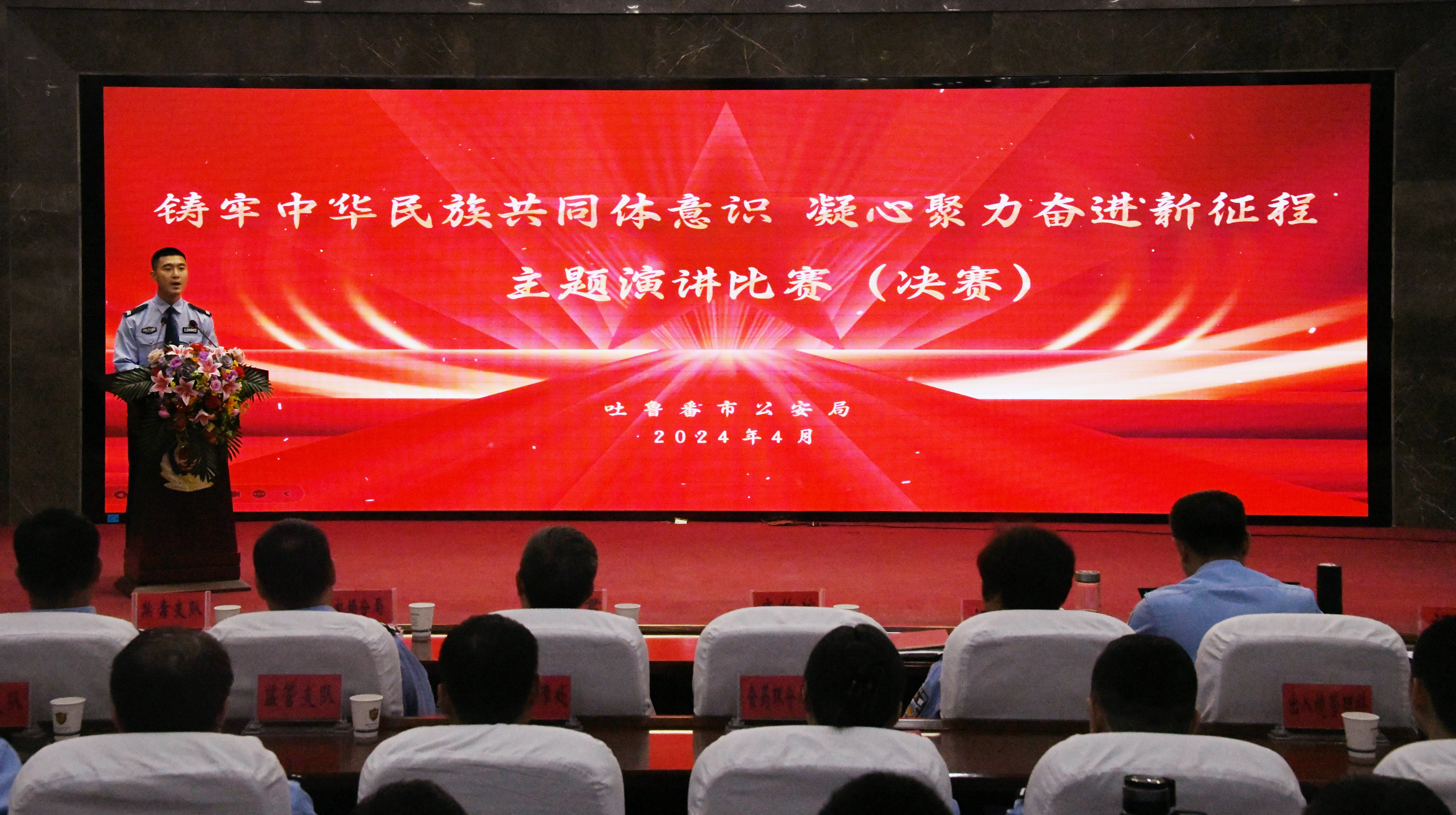 2024年4月,吐鲁番市公安局举办“铸牢中华民族共同体意识 凝心聚力奋进新征程”主题演讲比赛。通讯员 艾力亚尔·艾尼摄