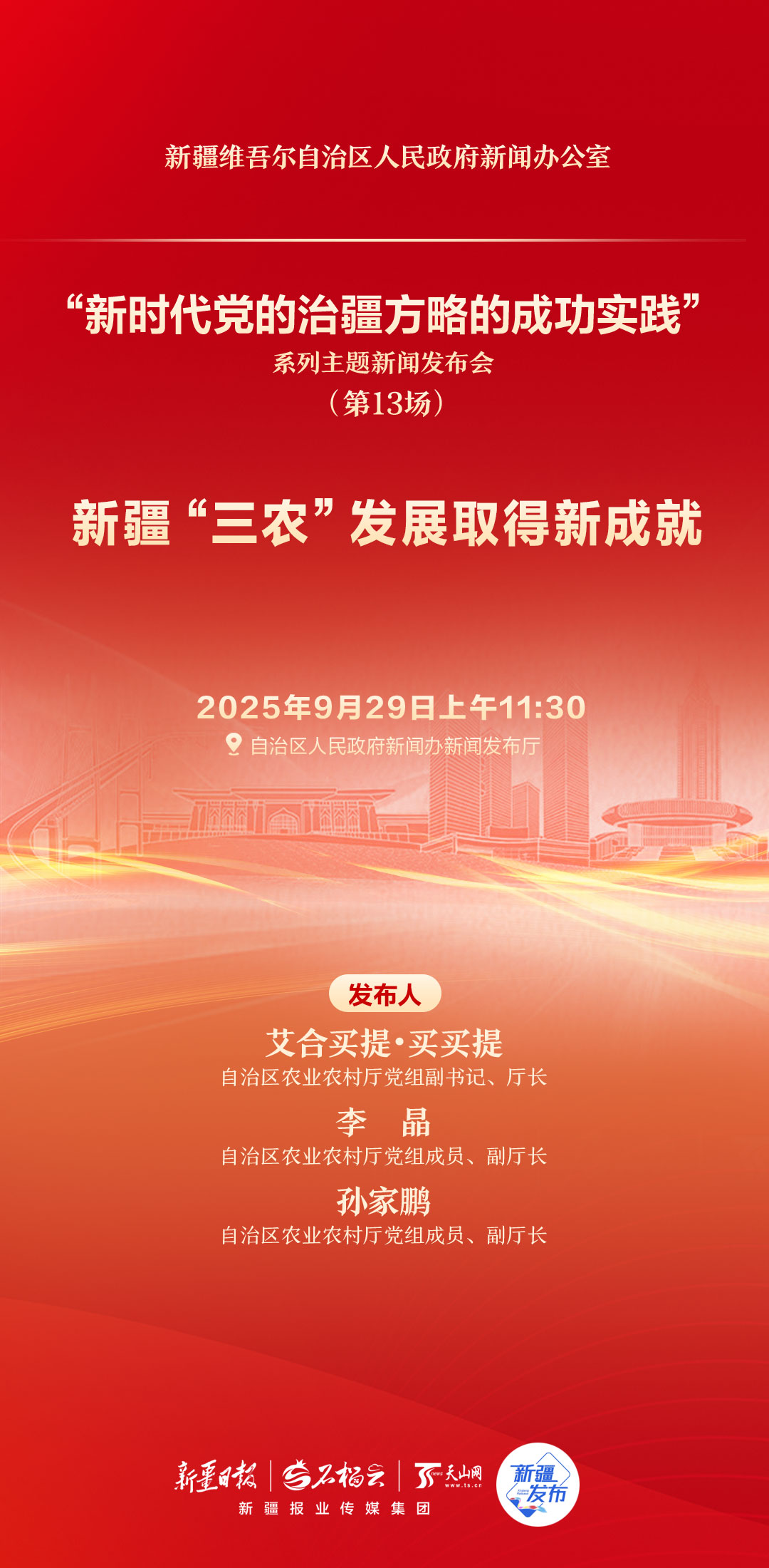 海报丨“新时代党的治疆方略的成功实践”系列主题新闻发布会(第13场)——新疆“三农”发展取得新成就