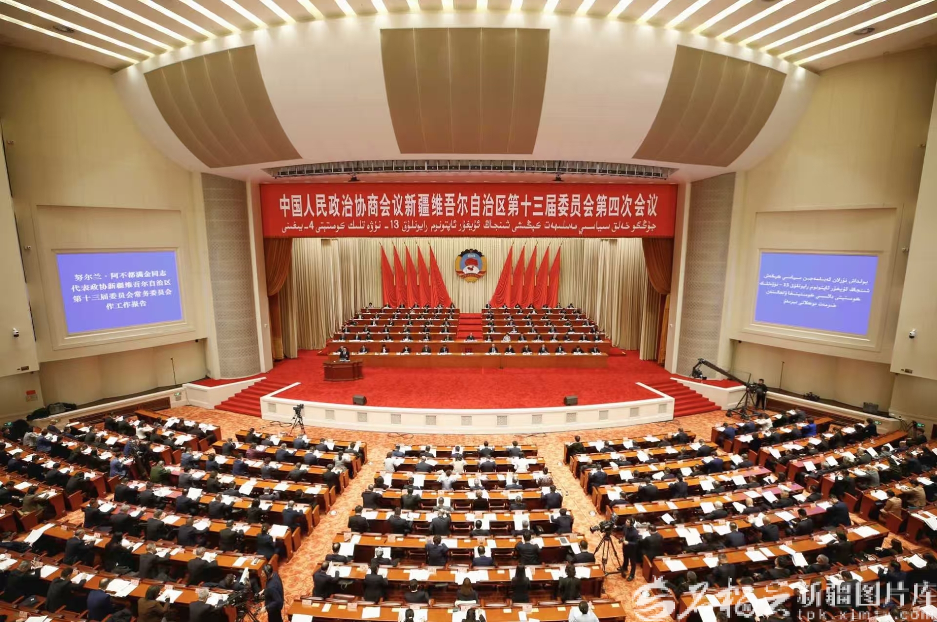 1月26日上午,自治区政协十三届四次会议在新疆人民会堂开幕。图为会议现场。