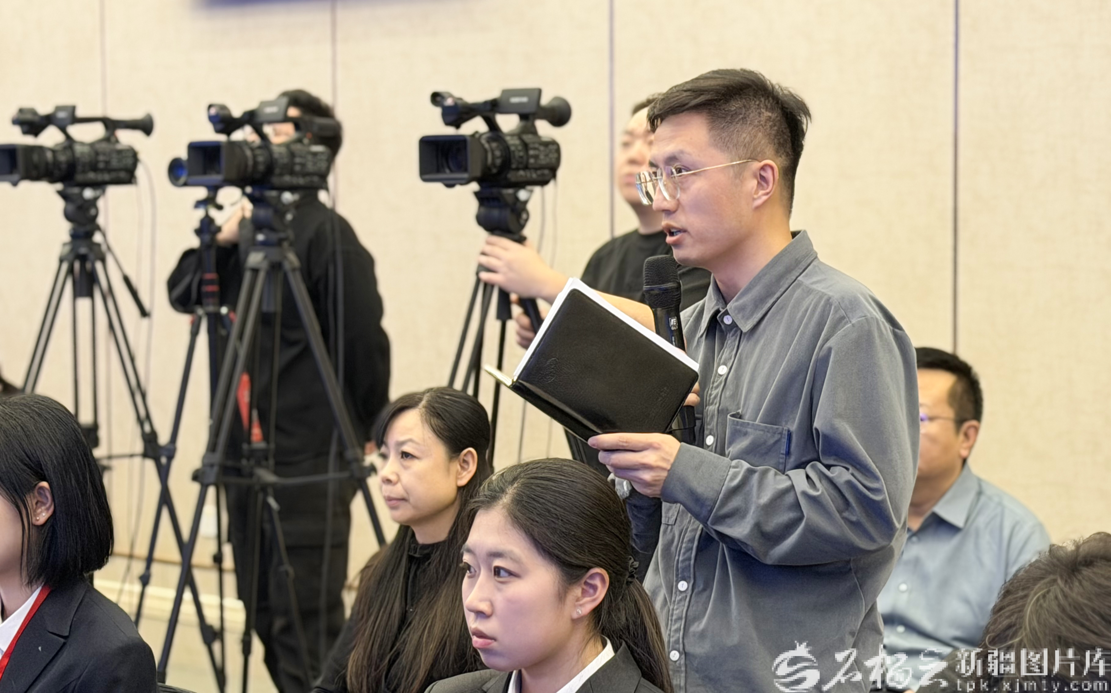 2026新疆两会第四场新闻发布会1月29日16时举行。图为记者在现场提问。天山网-新疆日报记者 李瑞摄