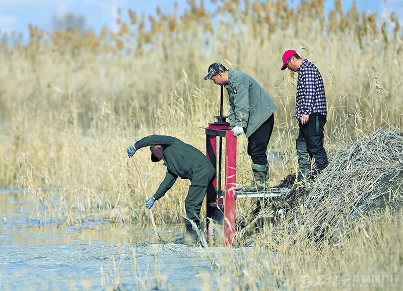 3月23日,管护员在疏通渠道。近些年,当地不断加大生态输水力度,湿地内水域面积达6万余亩。
