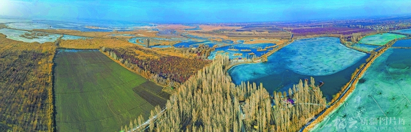 俯瞰玛纳斯国家湿地公园春色(3月23日摄)。